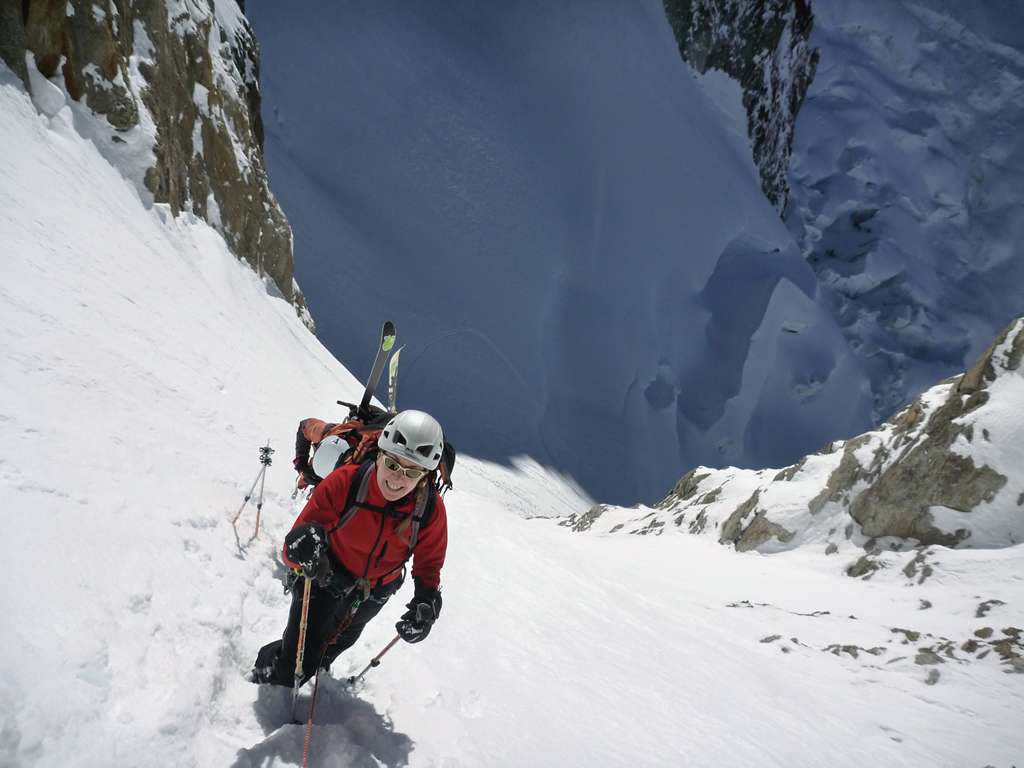 La salita si svolge lungo il ghiacciaio delle Periades fin dove questo muore contro l’evidente bastionata rocciosa frastagliata dall’apparenza insurmontabile. Una volta raggiunta, si scopre finalmente il canale che conduce al colle, lungo circa 300m, che se non fosse sempre al Sole e molto frequentato per la salita, verrebbe davvero voglia di scenderlo con gli sci! Una volta arrivati alla breche la vista è assolutamente unica e grandiosa sul bacino del ghiacciaio del Mont Mallet contornato dalla parete N delle Grandes Jorasses e del dome di Rochefort, dall’Aiguille de Lechaux alle Petites Jorasses. La discesa è in condizioni ottime, ma il ghiacciaio tormentato richiede sempre molta attenzione e controllo. Questa volta abbiamo seguito l’itinerario che attraversa il ghiacciaio verso la destra orografica per avvicinarci il più possibile alla PARETE NORD, quest’anno ahimé molto secca. La discesa è favolosa e troppo brevemente siamo di nuovo in Vallée Blanche. Ancora qualche chilometro di strada e arriviamo in paese a Chamonix, ancora con gli occhi pieni di montagna e di pareti spettacolari. Tra le più belle gite di sci alpinismo nel massiccio del Monte Bianco.