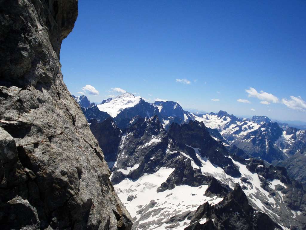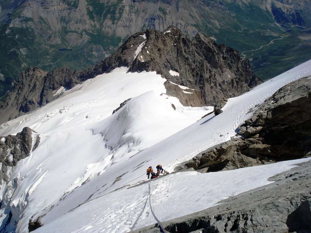 La traversata integrale delle creste della Meije è una delle vie normali più belle e difficili delle alpi. Il suo percorso segue dapprima uno sperone roccioso alto 900 m, per poi traversare sul filo di cresta tra neve e roccia. Il panorama è a 360 gradi: si vedono il Monte Bianco, il gran Paradiso, la Barre des Ecrins, il Grand Combin, etc…