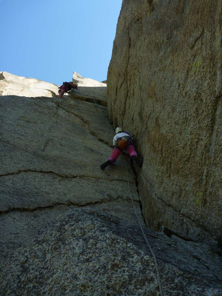 La via è di grande interesse, sia la parte alta che la variante diretta chiodata da Giorda & C. I diedri sommitali sono estetici e molto fisici richiedono buona dimestichezza nel sapersi proteggere e un po di tecnica di incastro.
